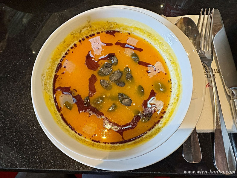 前菜と言えばサラダ、スープなどがすぐに浮かびます。 ウィーンに来られてレストランに入ってスープを頼む方も多いでしょう。 スープにもコンソメ風、クリームスープ、グラーシュスッペなど色々な種類があります。 この秋の時期の定番スープとしてかぼちゃのスープはいかがでしょうか?